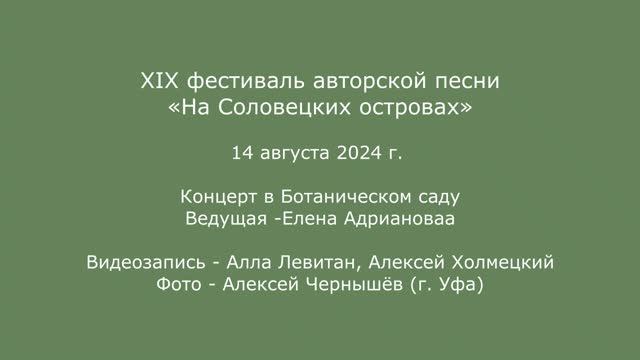 XIX фестиваль авторской песни «На Соловецких островах». 14 августа 2024 г. Концерт в Ботаническом саду. Ведущая - Елена Адрианова. Видеозапись - Алла Левитан, Алексей Холмецкий.