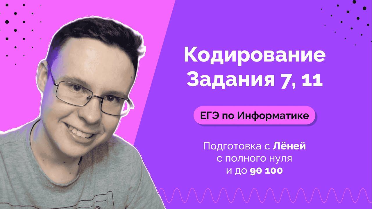Готовимся к ЕГЭ по Информатике 2024 и решаем все задания №7 и №11 на равномерное кодирование информации с недавно прошедшего экзамена ЕГЭ 2023. Подготовка к экзамену вместе со мной возможна в различных форматах. Свяжитесь со мной лично или найдите мои курсы по ссылкам ниже. Успехов вам =) Чтобы записаться в бесплатную сентябрьскую мастер-группу, пиши "МГ" мне в личные сообщения ВКонтакте: ➤ https://vk.com/im?sel=335575064 Записаться на индивидуальные занятия: ➤ https://vk.com/im?sel=335575064 *Мои Бесплатные Курсы на Stepik :* ➤ Python 3 - https://stepik.org/122809 ➤ "С Нуля до 40+ Баллов" - https://stepik.org/122795 *Мои Платные Курсы на Stepik :* ➤ Задания 1-23 - https://stepik.org/a/121057 ➤ Задание 24 - https://stepik.org/a/113430 ➤ Задание 25 - https://stepik.org/a/115478 ➤ Задание 26 - https://stepik.org/a/118263 ➤ Задание 27 - https://stepik.org/a/111154 ➤ Задания 1-27 - https://stepik.org/a/123226 ➤ Задания 24-27 - https://stepik.org/a/123227 ➤ Задания 1-26 - https://stepik.org/a/171738 ➤ Задания 26-27 - https://stepik.org/a/171737 *Ссылки :* ➤ Группа ВК - https://vk.com/shastin_ege ➤ Беседа в ВК - https://vk.me/join/yD5wZwEGSTFR9QzLU7PpapaPLdawuvRgEps= ➤ Я в ВК - https://vk.com/leonid_shastin ➤ Telegram: https://t.me/infkege ▃▃▃▃▃▃▃▃▃▃▃▃▃▃▃▃▃▃▃▃▃▃▃▃▃▃ *Навигация :* 00:00 Приветствие 00:35 Задание 7-1 (досрочная волна) 06:14 Задание 7-2 (основная волна I) 07:54 Задание 7-3 (основная волна II) 10:24 Задание 7-4 (резерв) 11:40 Задание 11-1 (досрочная волна) 15:26 Задание 11-2 (основная волна I) 16:34 Задание 11-3 (основная волна II) 17:36 Задание 11-4 (резерв) 18:28 Итоги и напутствие *Информация о Видео :* ➤ Запись Видео - OBS Studio ➤ Язык Программирования - Python 3.10 ➤ Среда Разработки - IDLE ➤ Превью Видео - Adobe Photoshop 2020 #кегэ #егэ #информатика