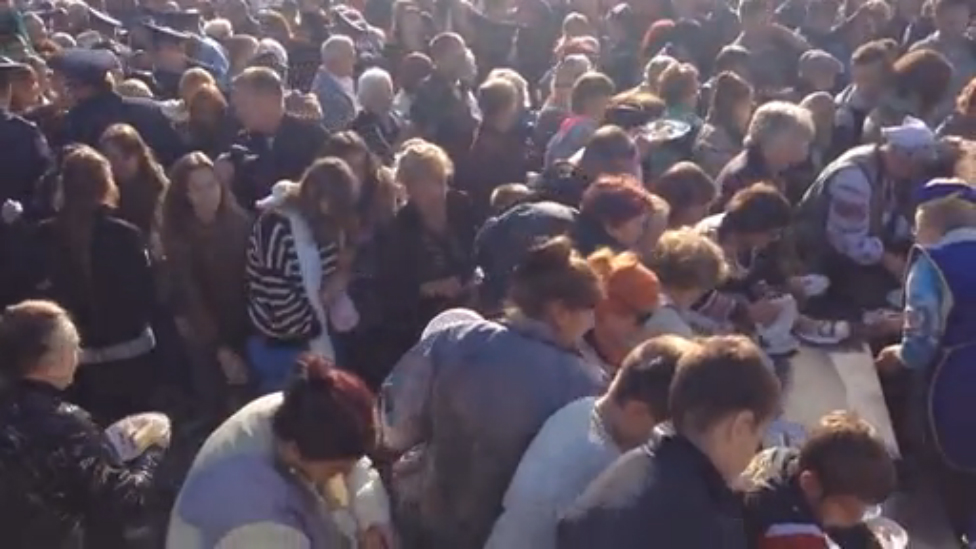 3 октября 2015 года, в первую субботу месяца, в Запорожье празднуют День города. В этот раз раздавали бесплатный торт, что спровоцировало массовую давку. Не помогло даже заграждение из представителей правопорядка.