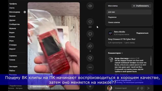 Почему ВК клипах на ПК, при просмотре, качество меняется на низкое?