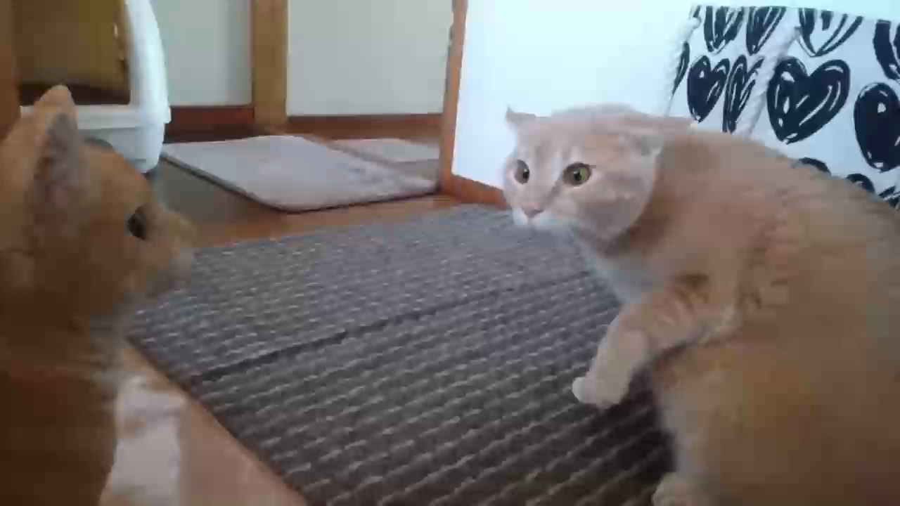 Забавная реакция кота на статуэтку кота. #прикол #кот #реакция #конкурент #испуг