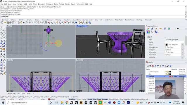 In today’s tutorial, we are going to learn how to build various types of tables using Rhino 3D. Tables have common dimensions for different functions. We will cover various techniques to design a table. Desk with a combination of primitive shapes Dining Table by extruded legs Round Dining table with twisted legs Coffee table with an organic base We use very basic commands of Rhino for this tutorial. It should be relatively easy to follow. Download Tutorial File: https://www.dropbox.com/s/lg85diarqg5zwmu/RI_W02_TABLES.3dm?dl=0
