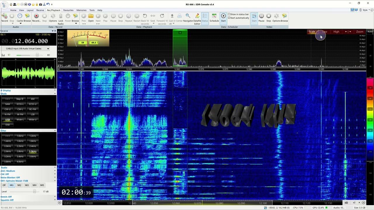 It looks like some kind of military broadcast based on its style. The language is Chinese. The data type resembles BR-6028 or MIL-STD-188-110 Appendix B, I think. Stílusa alapján katonai adásnak tűnik. A nyelv kínai. Az adattípus szerintem a BR-6028 vagy a MIL-STD-188-110 Appendix B.