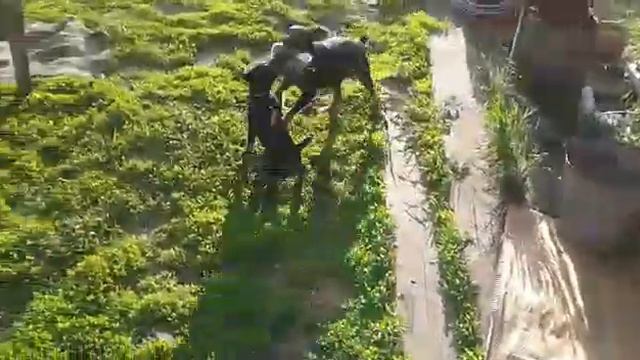 Ягдтерьеры рвут медведя зашедшего в огород