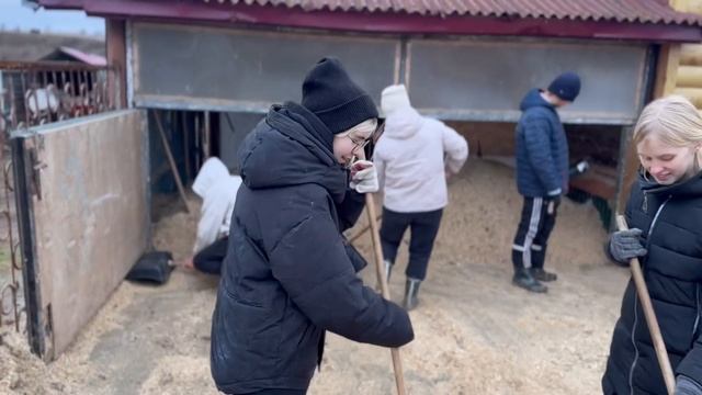 День начался с подъёма в 8 утра, который вновь задавала колонка Алиса. Ребята бодро собрались и отправились на зарядку. Утренние пробежка и упражнения на свежем воздухе, несмотря на прохладную погоду, дали всем заряд энергии и помогли поддержать форму, необходимую для работы с лошадьми. После завтрака вся группа отправилась на конюшню, где работа была организована быстро и чётко. Опытные ребята зауздали лошадей и провели чистку, и уже вскоре начались занятия. Группы разделились по уровню подготовки: средняя по опыту группа тренировалась в леваде, а более опытные участники отправились на прогулку по деревне. Новички Олеся и Максим занимались в леваде и показали хорошие результаты. Олеся, обладая хорошей физической подготовкой, уверенно выполняла упражнения и даже попробовала пройтись рысью, а Максим, после дополнительных тренировок, смог самостоятельно сесть на коня, что стало важным достижением для него. Завершив занятия, ребята продолжили работу на конюшне: тётя Катя привезла свежий опил, который они разгрузили, распределили по денникам и подмели помещения. К часу дня работа была выполнена, и ребята вернулись домой на обед. За обедом Максим высказал своё недовольство по поводу того, что ожидал от сборов больше отдыха, чем работы, что вызвало дружный смех у остальных и немного разрядило обстановку. Во второй половине дня ребята немного поиграли на улице, затем собрались в доме и увлеклись игрой в «Шляпу». Вечером, после ужина, мы начали просмотр фильма «История рыцаря». Ребята успели посмотреть только половину фильма, после чего попросили немного свободного времени перед сном, чтобы спокойно завершить день и обсудить события. Так прошёл третий день: насыщенный трудом, командной работой и весёлыми моментами, укрепившими командный дух и подарившими всем яркие впечатления.