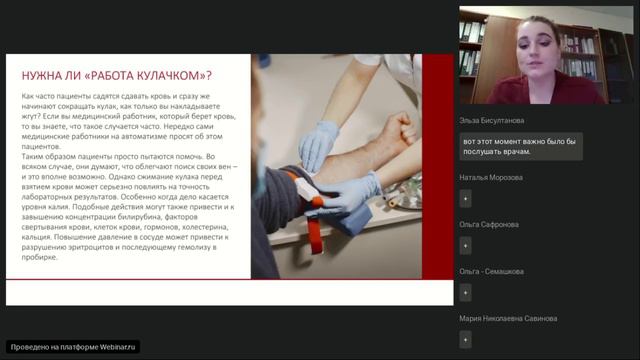 «Аудит преаналитического этапа» Лектор: Цуцунава М.Р., BSc, MS, ассистент кафедры гериатрии, пропедевтики и управления в сестринской деятельности СЗГМУ им. Мечникова. Представим обзор результатов научных исследований отдельных вопросов, связанных с преаналитическим этапом лабораторной диагностики. «Практические вопросы преаналитического этапа» Лектор: Малюченкова Е.А., медицинская сестра анестезиологии и реанимации первой квалификационной категории, бакалавр по биотехническим системам и технологиям электротехнического университета ЛЭТИ. Обсудим риски ИСМП при взятии образцов крови у пациента, типичные ошибки на этапе взятия пробы, виды, причины некачественной пробы крови, особенности маркировки и транспортировки, необходимость внедрения индикаторов качества преаналитического этапа, вопросы, связанные с разработкой СОПов.
