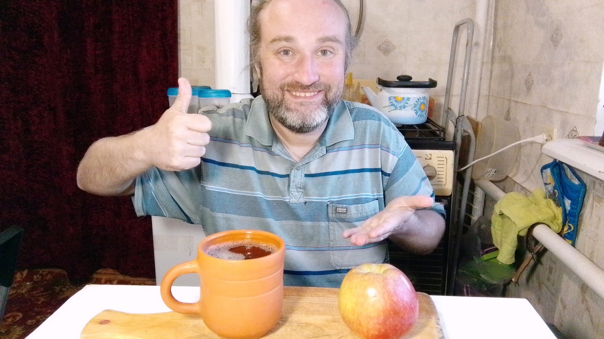 ужин вкусное и крупное яблоко и чай-чаёк. мукбанг. обжор. еда на камеру. диета. шизофрения.