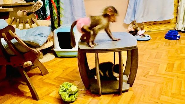 С Маней что-то стало, она стала совсем бесстрашная и хочет СЪЕСТЬ ПОПУГАЯ Жору)))