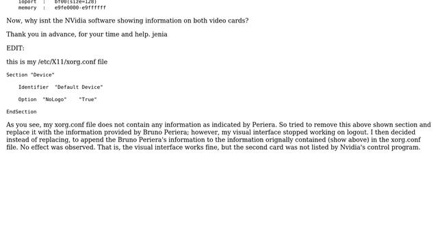 Ubuntu: Nvidia not showing both video cards Helpful? Please support me on Patreon: https://www.patreon.com/roelvandepaar With thanks & praise to God, and with thanks to the many people who have made this project possible! | Content (except music & images) licensed under cc by-sa 3.0 | Music: https://www.bensound.com/royalty-free-music | Images: https://stocksnap.io/license & others | With thanks to user Jenia Ivanov (https://askubuntu.com/users/41110), user Bruno Pereira (https://askubuntu.com/users/25863), and the Stack Exchange Network (http://askubuntu.com/questions/93887). Trademarks are property of their respective owners. Disclaimer: All information is provided "AS IS" without warranty of any kind. You are responsible for your own actions. Please contact me if anything is amiss at Roel D.OT VandePaar A.T gmail.com.