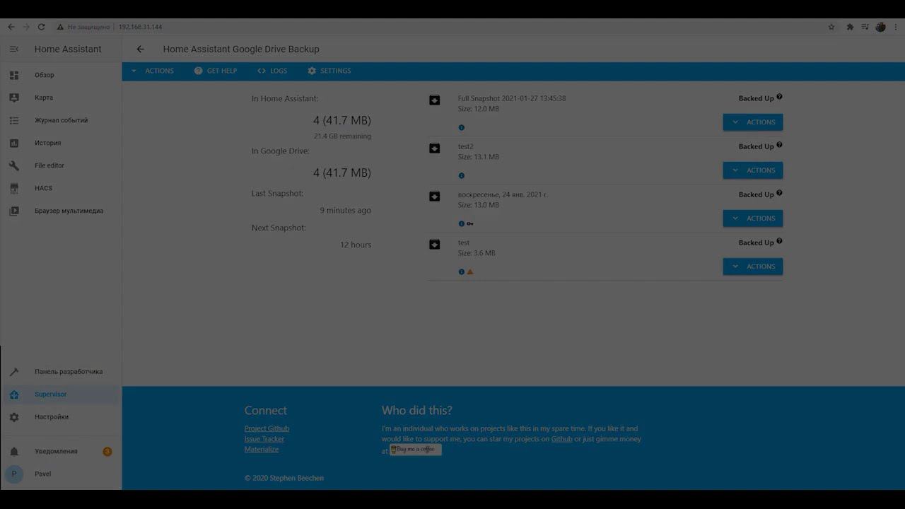 Резервное копирование в Home Assistant. Отправка резервных копий в облако на google drive.
