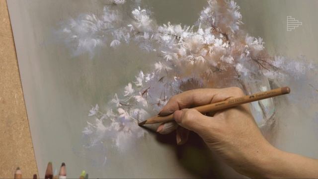 Цветущая слива. Натюрморт сухой пастелью. Рисует художник Татьяна Каштальян