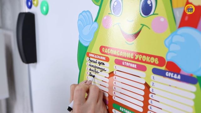 Наши магнитные расписания помогут школьникам правильно организовать учебный процесс. Теперь яркое, милое расписание уроков всегда будет у ребёнка перед глазами и напомнит о том, какие уроки ждут малыша на этой неделе. Поверхность планера заламинирована, поэтому с неё легко стереть написанное и использовать расписание уроков много-много раз. К каждому расписанию прилагается маркер на магните с губкой, который идеально подходит для работы с этим планером.
