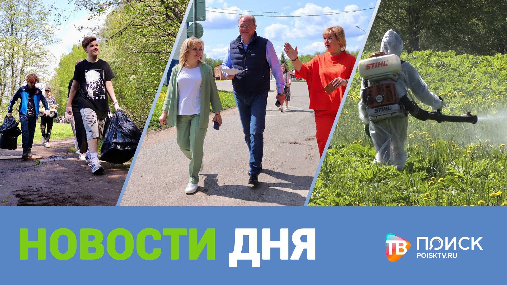 * Осторожно, борщевик. В Клину в этом году от опасного растения обработают почти 5 тысяч гектаров муниципальных земель. С начала мая бригады подрядчика уже обработали 720 га. * Лицом к лицу. В округе продолжает работу выездная администрация. В этот раз специалисты муниципалитета отвечали на вопросы жителей Воронинского территориального округа. * Фронт работ - большой. Активисты навели порядок в лесополосе поселка Чайковского. Территорию планировали убрать еще в конце апреля, но тогда погода нарушила планы общественников. * Богаты талантами. В Клину вот уже более 20 лет проходит конкурс "Одаренные дети". В этом году около трехсот ребят получили награды по 14 номинациям. Об этом и не только в программе "Новости дня"