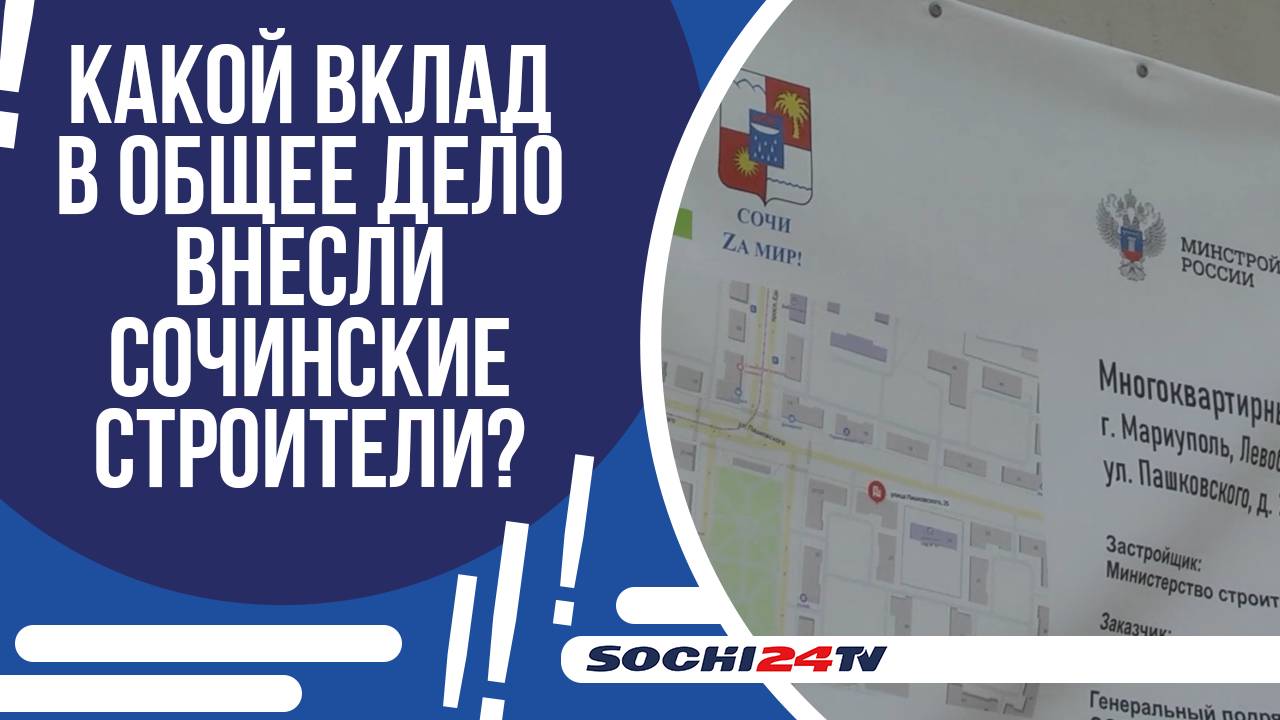 Среди них Центральная школа искусств Мариуполя, которую восстановили сочинские строители. Здесь будут обучаться 800 детей.Только от строительного комплекса Сочи в новые регионы страны направлено порядка 1200 строителей. У них в работе сейчас более 200 объектов в Донецке, Мариуполе, Амвросиевке, Харцызске и Макеевке. #сочи24 #новости #сочи #новостисочи Телефон редакции: +7 (988) 235 10 20 (WhatsApp/Telegram) Почта: sochi24.tv@yandex.ru Сайт: https://sochi24.tv Одноклассники: https://ok.ru/sochi24 Яндекс Дзэн: https://zen.yandex.ru/sochi ВК: https://vk.com/sochi24tv Телеграм: https://t.me/sochi24tv Тик Ток: https://www.tiktok.com/@sochi24.tv