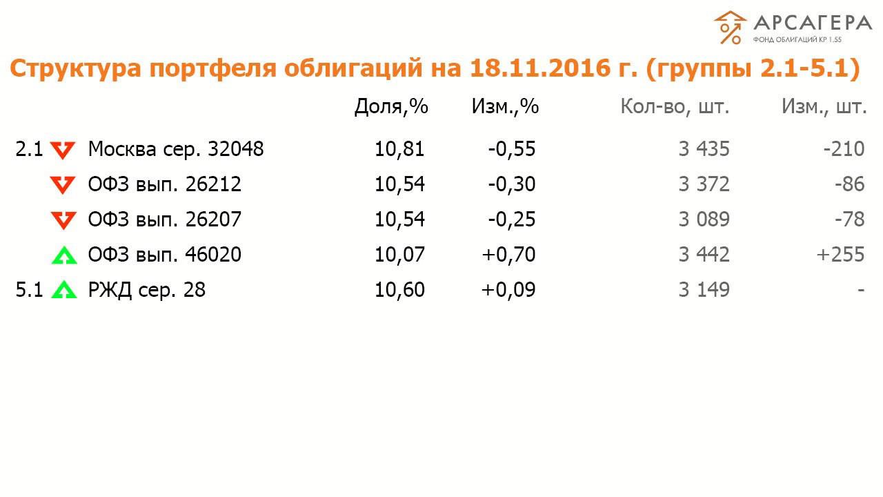 ОПИФО «Арсагера - фонд облигаций КР 1.55» с 03.11 по 18.11.16