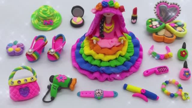Как сделать своими руками из пластилина миниатюрное радужное платье, набор для макияжа, тени, куколь