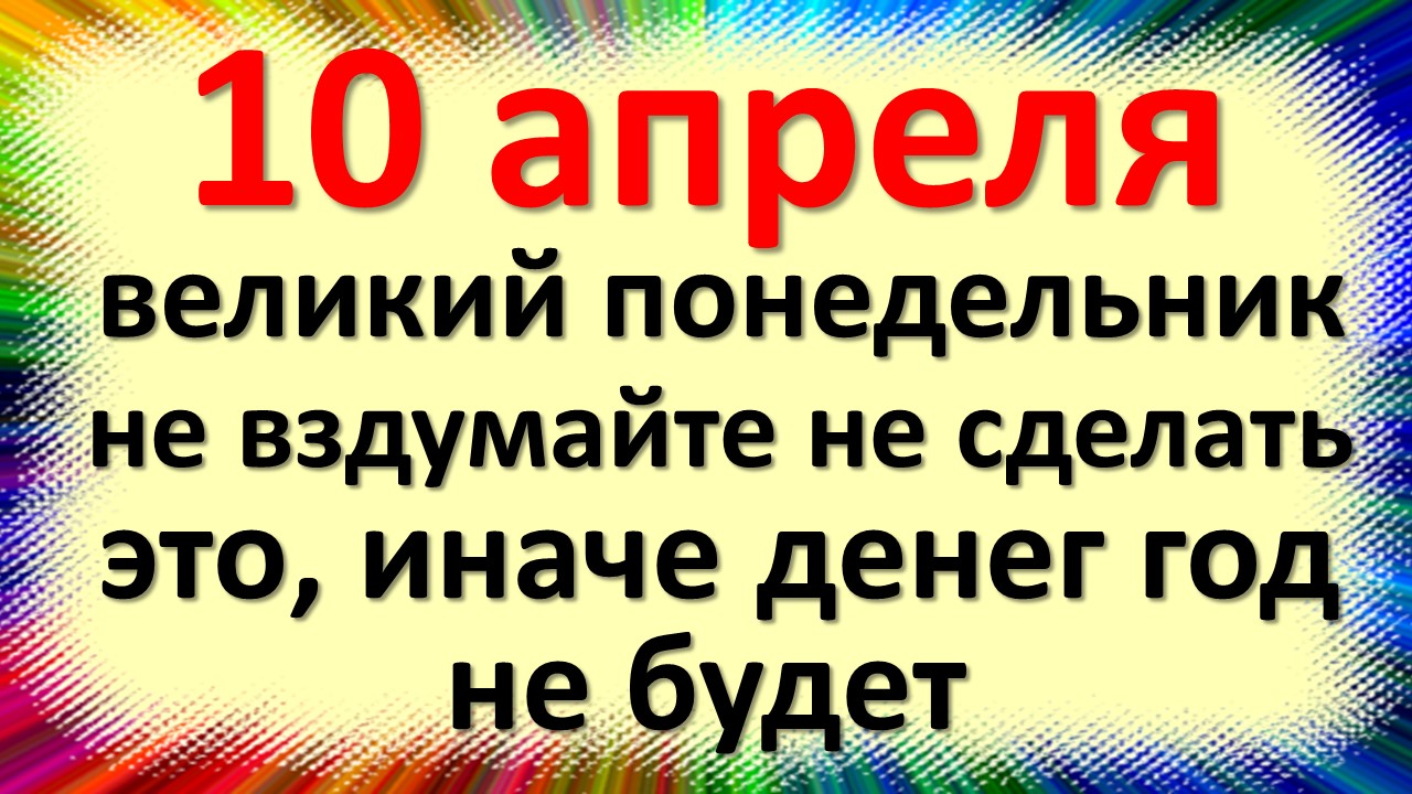 Народные традиции и приметы на 10 апреля. Что категорически нельзя делать 10 апреля. 10 апреля Великий Понедельник. Это первый день Страстной недели Великого поста. Великий Понедельник еще называют Чистым Понедельником, как и первый день Великого поста. И именно с Великого Понедельника начинают подготовку к Светлому празднику Пасхи. В православии в этот день почитают преподобного Илариона Нового, который с юности избрал для себя иноческое житие. В народной традиции 10 апреля – Илларионов день. Другое название праздника – Иларион – выверни оглобли. Считалось, что с этого дня погода становится по настоящему весенней и сани больше не понадобятся. Тропарь на Великий Понедельник, глас 8 Се, Жени́х гряде́т в полу́нощи,/ и блаже́н раб, его́же обря́щет бдя́ща,/ недосто́ин же па́ки, его́же обря́щет уныва́юща./ Блюди́ у́бо, душе́ моя́,/ не сно́м отяготи́ся,/ да не сме́рти предана́ бу́деши/ и Ца́рствия вне затвори́шися,/ но воспряни́ зову́щи:/ Свят, Свят, Свят еси́, Бо́же,/ Богоро́дицею поми́луй нас. В этом видео вы узнаете: какой народный праздник 10 апреля, церковный праздник на 10 апреля, что можно и нельзя делать 10 апреля, народные традиции и приметы на 10 апреля, суеверия и обряды, приметы, обычаи на 10 апреля.