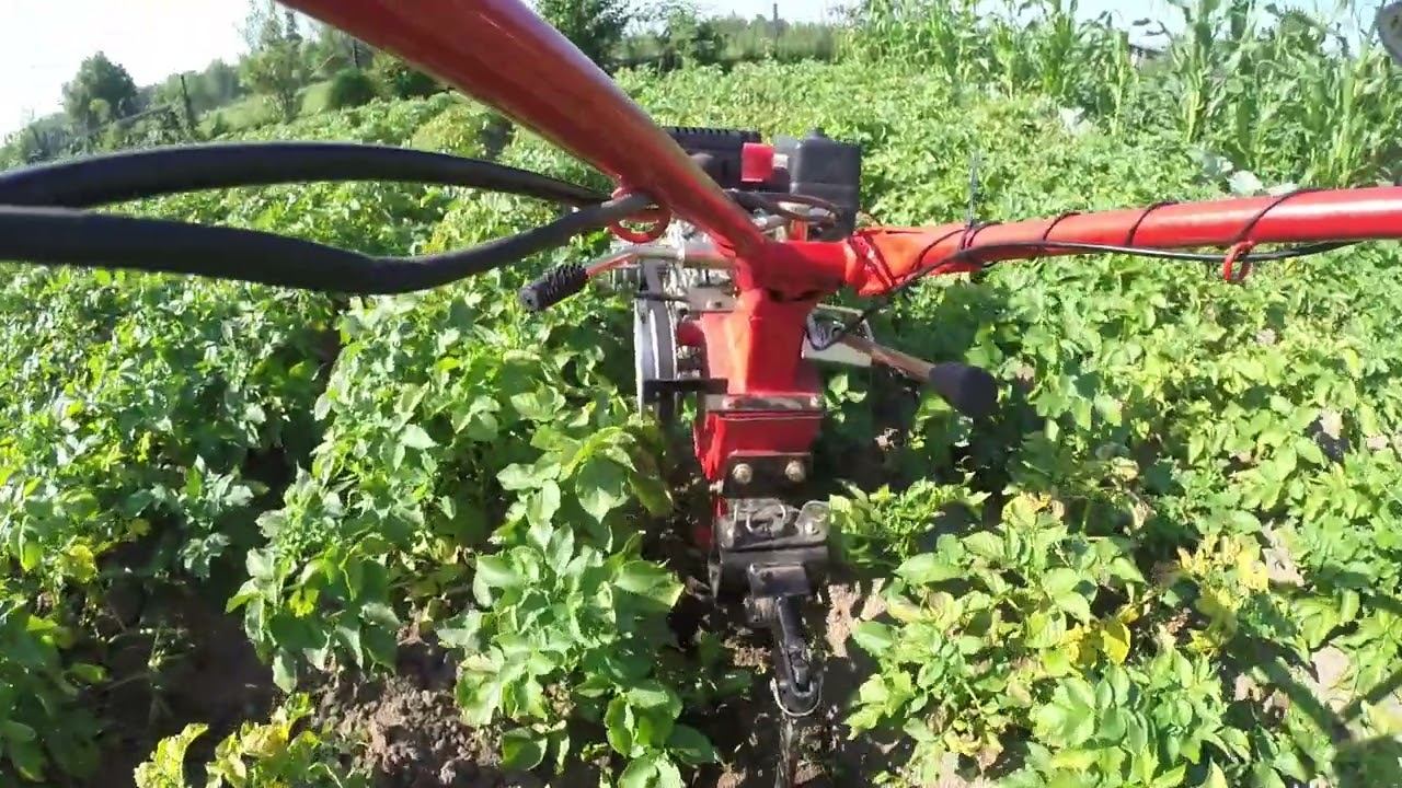 прополка и рыхление междурядий китайским 3-х скоростным ременным мотоблоком