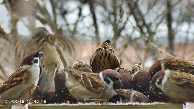 Воробьи в кормушке -
