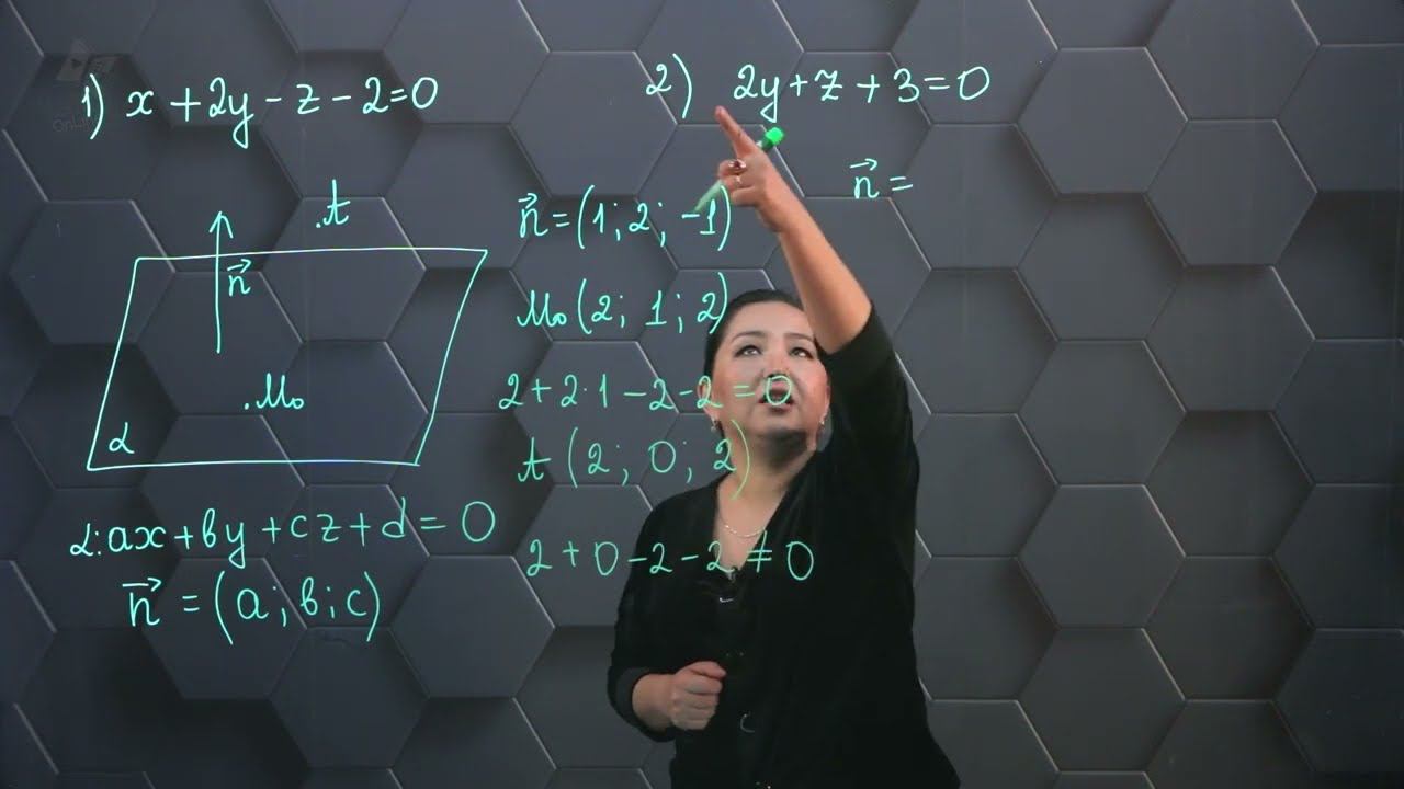 Кеңістіктегі түзу мен жазықтықтың теңдеуі. Практикалық бөлім. 11 сынып.