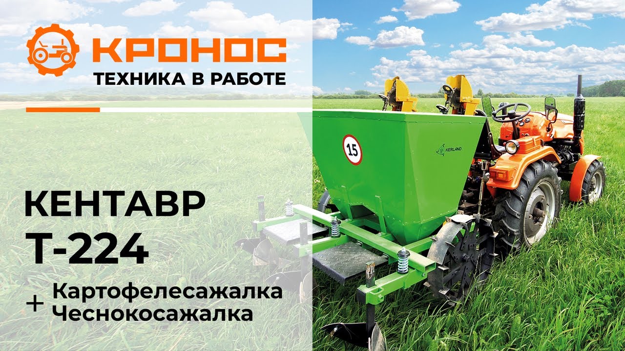 Обзор: Минитрактор Кентавр Т-224 (Toyokawa) с картофелесажалкой и чеснокосажалкой в работе