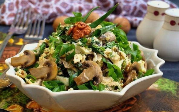 Салат с жареными шампиньонами