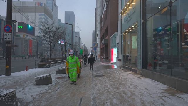 [4K HDR] Walking in the Snowy Gangnam Streets Seoul ASMR Ambience Sounds Korea