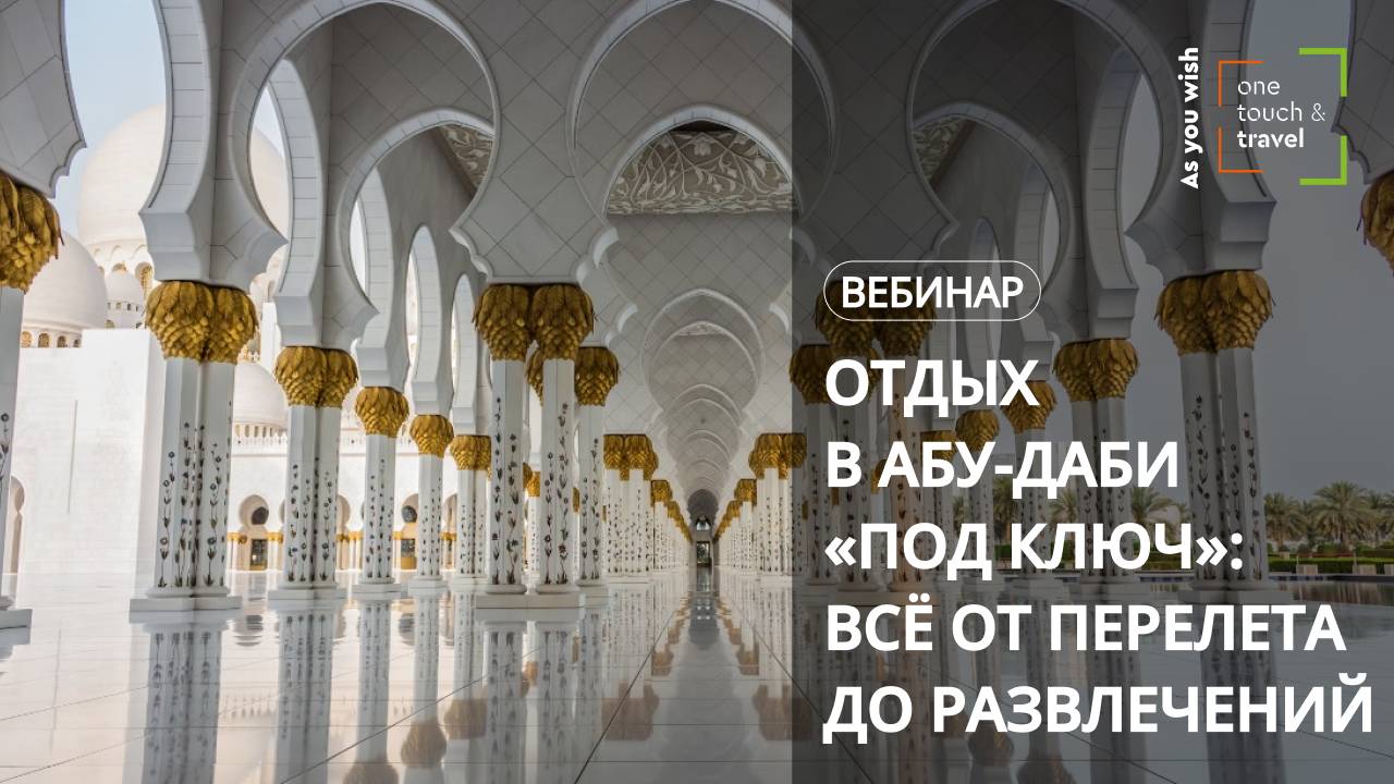 Абу-Даби — это роскошный отдых, впечатляющие достопримечательности и высокий уровень сервиса. На вебинаре мы поговорим от организации перелета, особенностях организации отдыха и развлечениях в Абу-Даби. Спикеры: Ольга Захарова - Представитель Департамента культуры и туризма Абу-Даби Андрей Колодий - представитель авиакомпании Etihad Airways Дараган Алиса - представитель о.Яс и о.Саадият в России и странах СНГ Присоединяйтесь, это будет интересно!