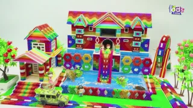 Магнитные шарики - Постройте Роскошную Виллу С Центральной Водной Горкой И Водяным Колесом Из Магнит