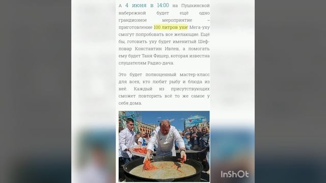 ЗАВТРА (в воскресенье) «Большая уха» с Константином Ивлевым в Парке Горького В рамках гастрономического фестиваля «Рыбная неделя» будет мастер-класс по приготовлению ухи, которой угостят всех желающих. Поможет в этом Шеф всея Руси, ресторатор, телеведущий, блогер Константин Ивлев. Роль су-шефа исполнит ведущая «ФМ ШОУ» Таня Фишер. Она не только станет правой рукой мастера, но и поделится семейными секретами приготовления рыбных блюд. А душевную атмосферу создадут любимые песни слушателей Радио Дача. Будет приготовлено 100 литров вкусного угощения. Также в рамках фестиваля будут другие мастер-классы, соревнования по рыбной ловле и рыбный рынок площадью 800 квадратных метров. ⏰ Начало в 14:00 ?Пушкинская набережная в Парке Горького ?Вход свободный Всем отличных выходных!!! #2023 #россия #москва #информация