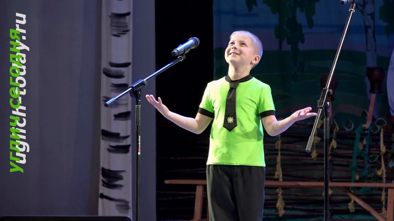 Воспитанник «Образцового самодеятельного коллектива» вокального ансамбля «Матанечка» Максим Чуланов читает стихотворение Аллы Ахундовой «Красивая девочка».