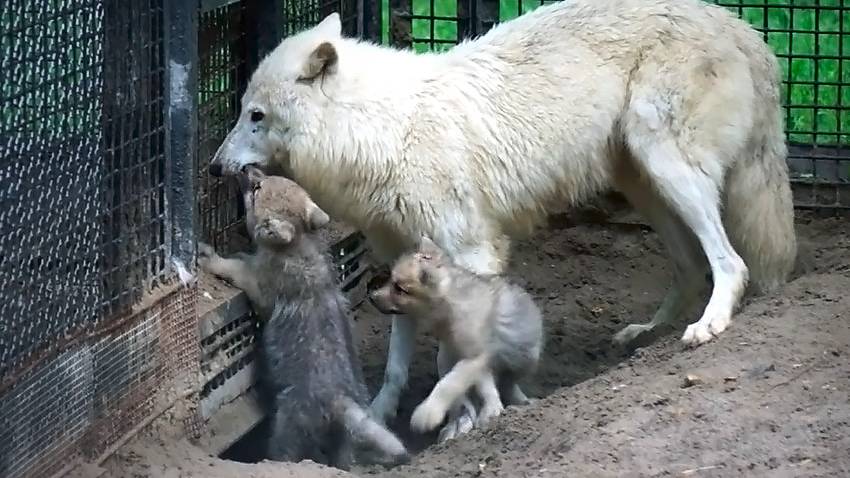 Полярные волчата бегают за мамой, прося их покормить, но мама убегает!