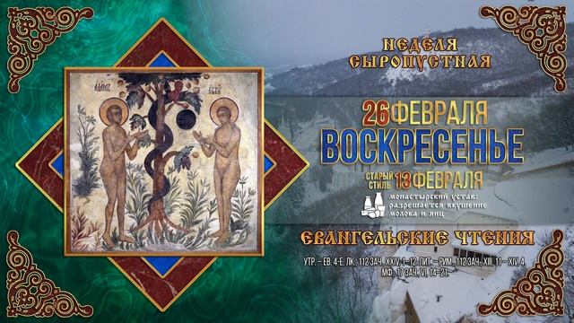 Неделя сыропустная. Воспоминание Адамова изгнания. Прощеное воскресенье. 26.02.2023 г.