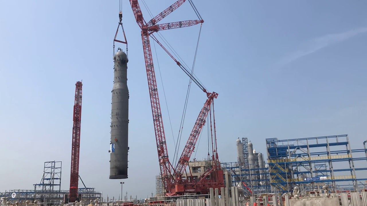 Колонна деазотирования весит 870 тонн, ее длина 58 м и диаметр 7,9 м.