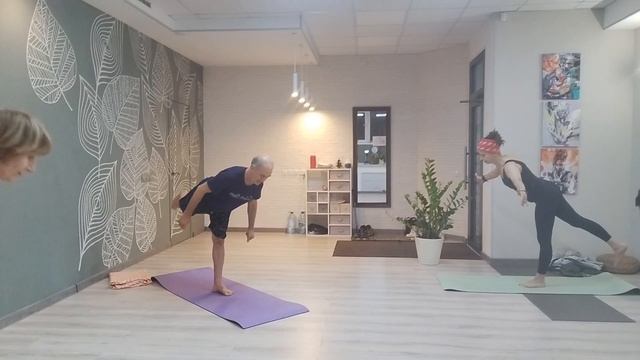 В основном расслабили плечи, ну и подышали немного