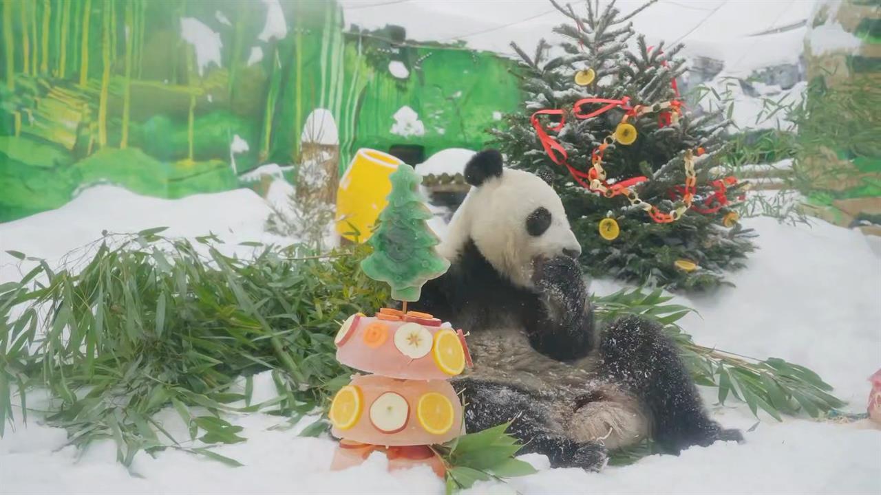 В Московском зоопарке панд поздравили с китайским Новым годом и вручили им подарки.