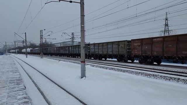 1 января 2023 года в 12:52 Станция Безымянка Куйбышевская железная дорога Very friendly from the team! 2TE25KM-0419 with freight train | Stakhanovskaya January 1, 2023 at 12:52 pm Station Bezymyanka Kuibyshevskaya railway