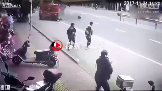 В Китае грузовой автомобиль перевернулся на оживленной улице, едва не подмяв под себя пешеходов. #дтп #повезло #китай