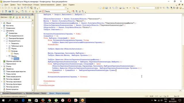 Обучение по созданию макета печатной формы в среде 1С