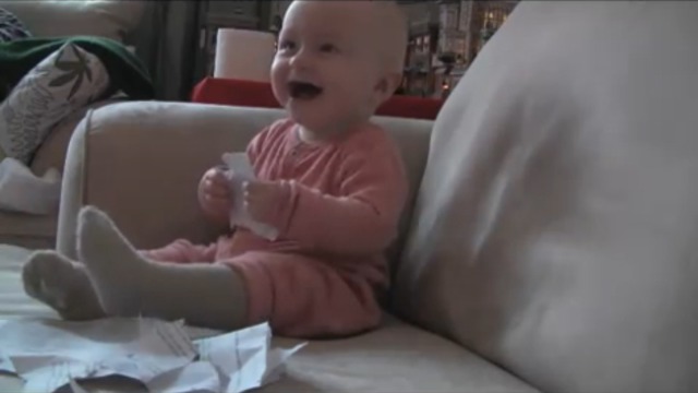Малыш смеется от порванной бумаги