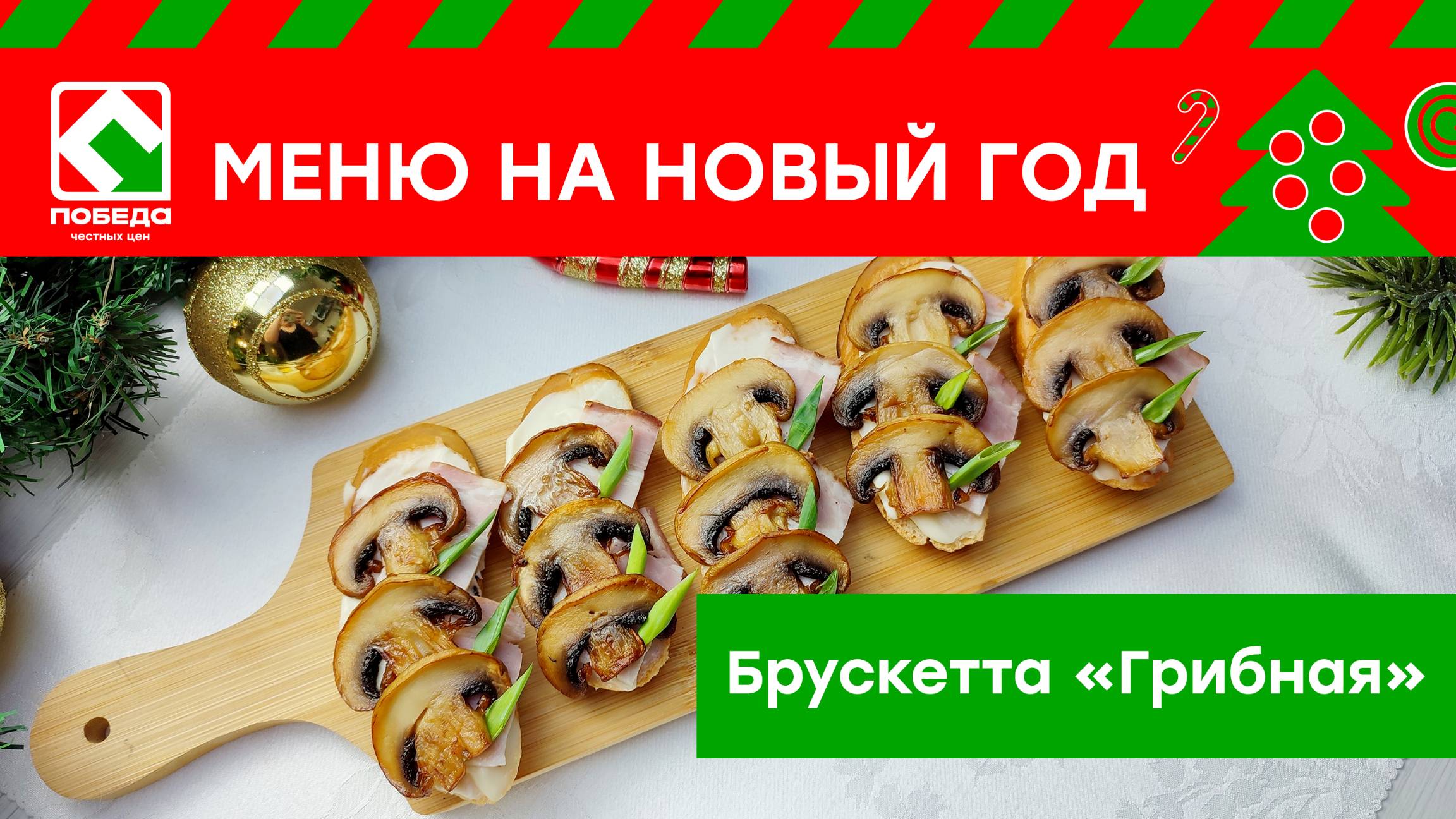 Новогоднее меню с магазином ПОБЕДА! Рецепт брускетта "Грибная"
