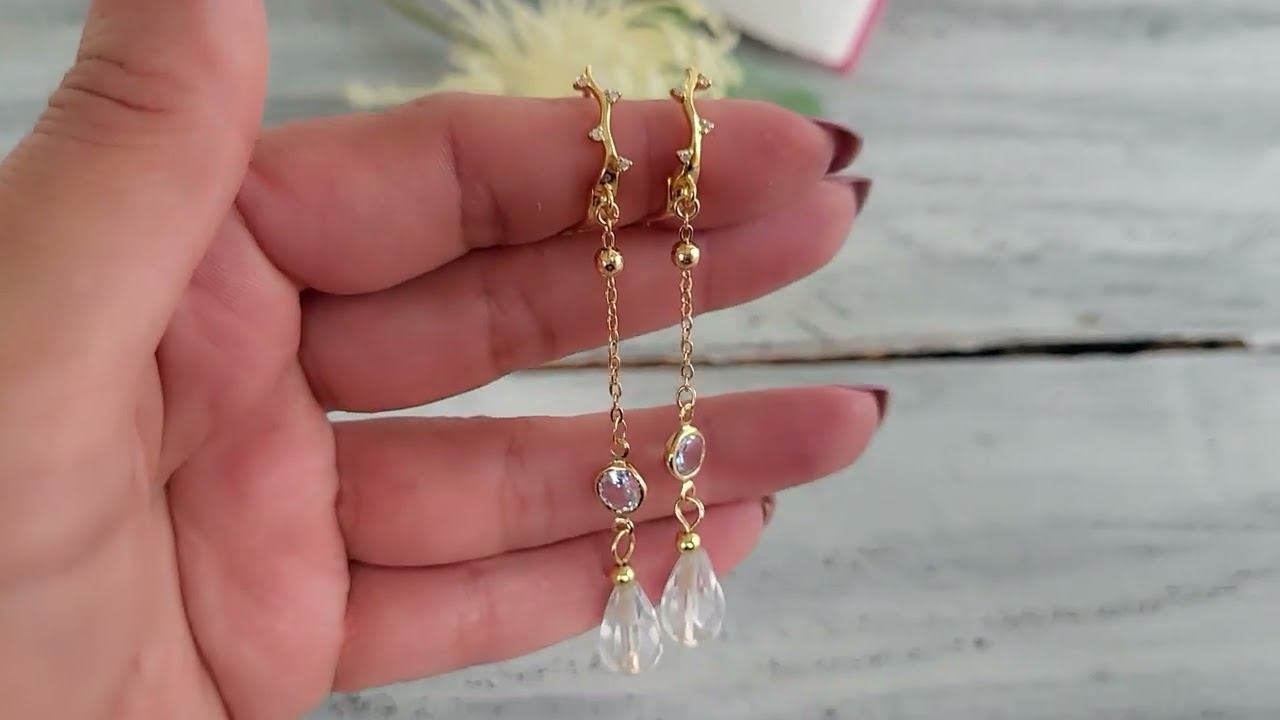 Серьги украшения из натуральных камней. Серьги длинные капли из горного хрусталя: горный хрусталь капля 8х14 мм. ювелирная огранка, цепочка со стразами покрытие золото 14 к., швензы покрытие золото 14 к., вставки фианиты, длина до швензы 60 мм., вес пары 4 гр. купить украшения можно в нашем магазине https://www.livemaster.ru/samotsvety-ot-granat-mk?view=profile