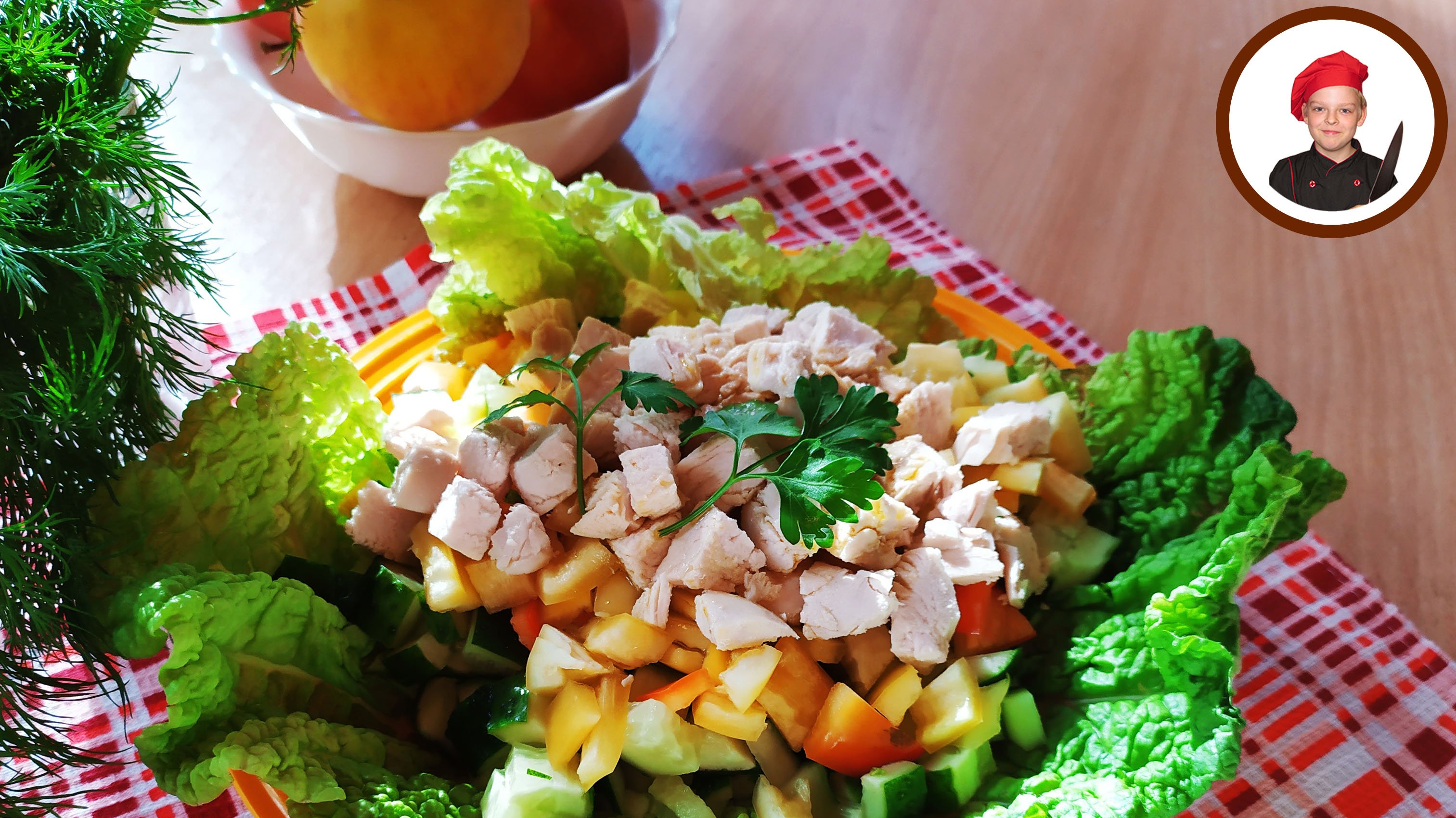 Салат "Легкий". Общее время приготовления 5 минут. Сложность приготовления - легко Ингредиенты: - Пекинская капуста - 3 листа - Огурец - средний - 3 шт. - Перец сладкий - 1 шт. - Куриное филе отваренное - 1 шт. - Масло оливковое - 1-2 ст.л. - Зелень для укаршения - Соль, перец по вкусу #рецепты #салаты #Апухтин #кулинария