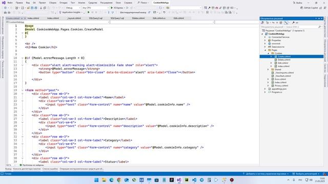 На данном видеоролике показа работа простого веб-приложения для учета печенья. Приложение реализовано на C# с применением технологии ASP.NET Razor Pages. На видео показана работа с приложением - удаление товаров - печенья, показана работа с базой данных - решение проблемы с знаками вопроса при добавлении. Ссылка на проект - https://studlearn.com/works/details/uchet-pechenya-c-asp-net-core-razor-pages-sql-268