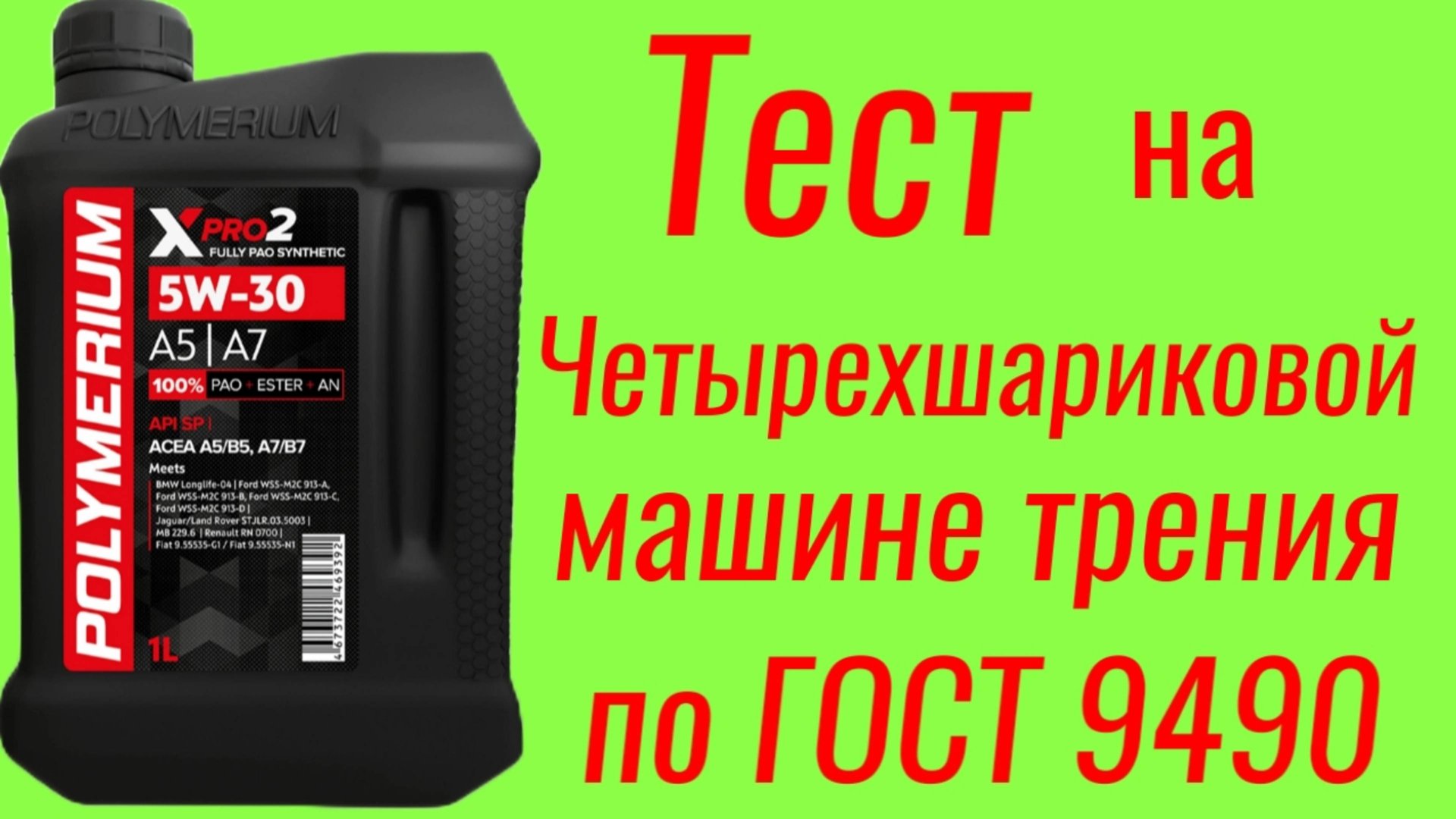 Polymerium xpro2 A5/A7 SP 5W30 Тест на ЧМТ по ГОСТ9490, 60 мин.
