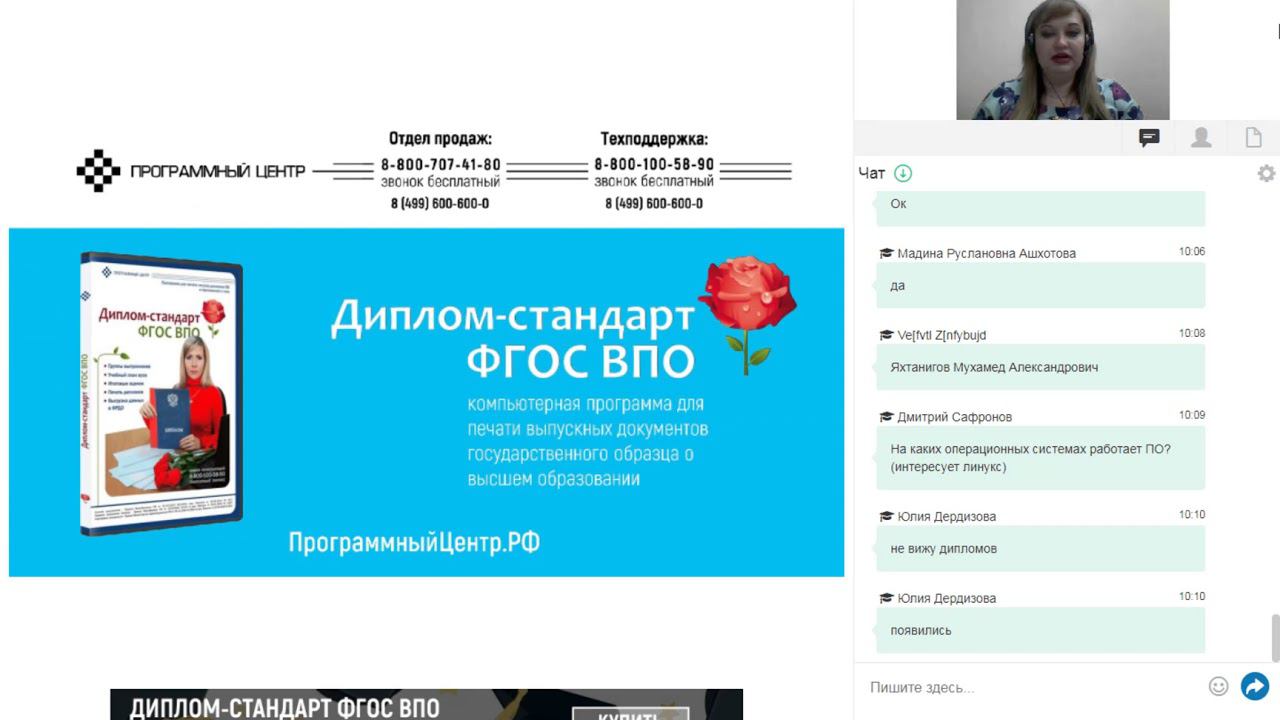Вебинар по заполнению и печати выпускных документов о высшем образовании в соответствии с Приказом Минобрнауки РФ от 29.11.2016 № 1487 в программе "Диплом-стандарт ФГОС ВПО"