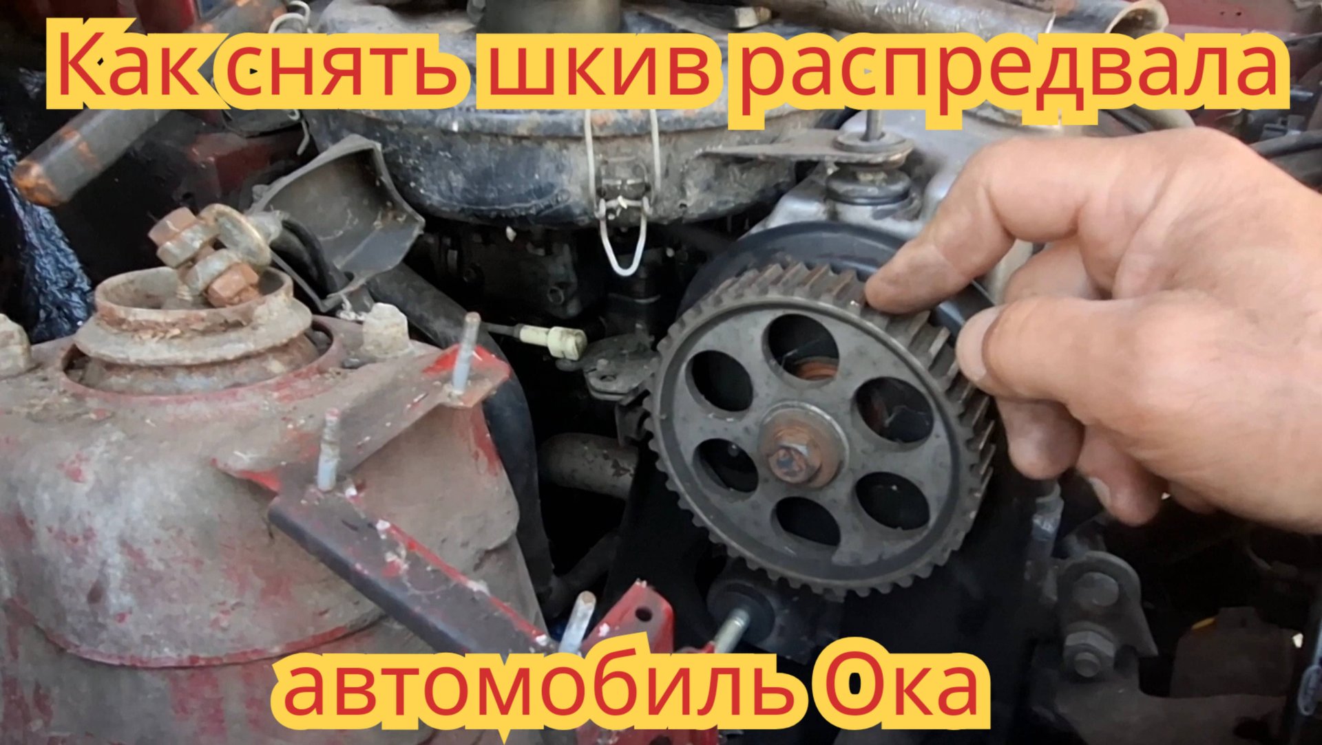Два способа, снять шкив распредвала, если нет специальных приспособлений, на автомобиле Ока.