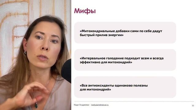 Как повысить энергию и продуктивность: секреты работы с митохондриями Смотреть мастер-класс «Как сохранить здоровье, красоту и высокую энергию после 35» 👉 https://nadyaandreeva.ru/trends12?utm_source=youtube&utm_medium=video2&utm_campaign=trends12 🔥 Скидка 40% на курсы и интенсивы: ✔️https://nadyaandreeva.com/24birthday?utm_source=youtube&utm_medium=video2&utm_campaign=24birthday В этом видео: Энергия – ваш главный ресурс для успешной жизни, работы и отношений. Разберём, как она формируется, почему её может не хватать и как поддерживать на высоком уровне. - Роль митохондрий: что это такое, как они работают и что ухудшает их функции с возрастом. - Ключевые подходы к повышению энергии: питание (CoQ10, магний, витамины группы B), физическая активность, интервальное голодание и холодовые процедуры. - Типичные ошибки: почему нельзя полагаться только на добавки, как токсины и стресс разрушают организм, и что с этим делать. 0:03 — Энергия как главный ресурс. 1:07 — Как митохондрии влияют на уровень энергии. 3:45 — Питание и ключевые нутриенты для энергии. 5:01 — Простые способы активации митохондрий: упражнения, холод, голодание. 8:56 — Основные ошибки в поддержании энергии. 12:46 — Базовые шаги для улучшения самочувствия. ✨ Напишите в комментариях: Какие из предложенных подходов к энергии вы уже применяете? Что оказалось для вас новым? Будем рады вашим отзывам и вопросам! 👇