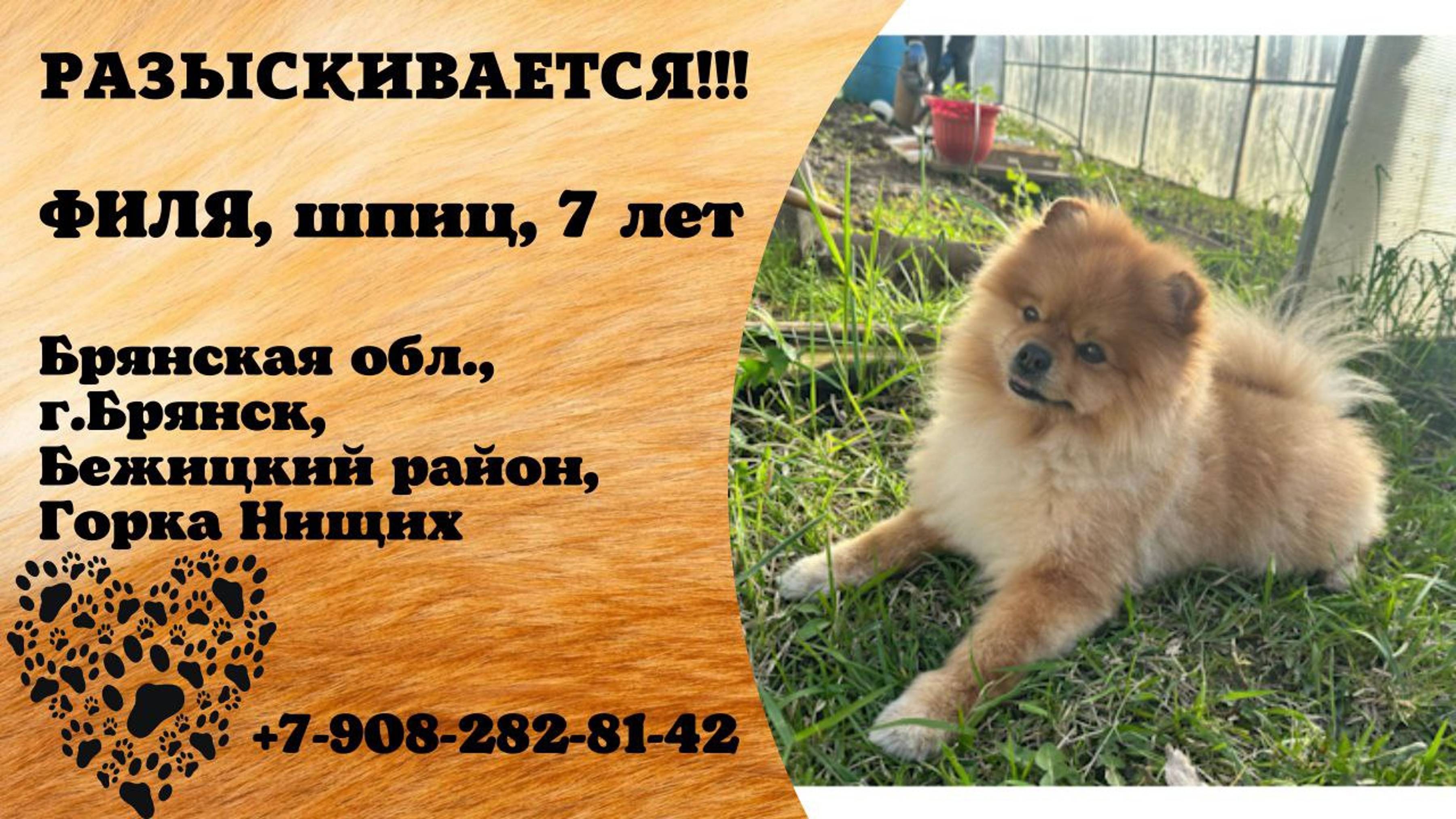 Пропала собака! ФИЛЯ. Шпиц. 7 лет. Брянская обл, г. Брянск