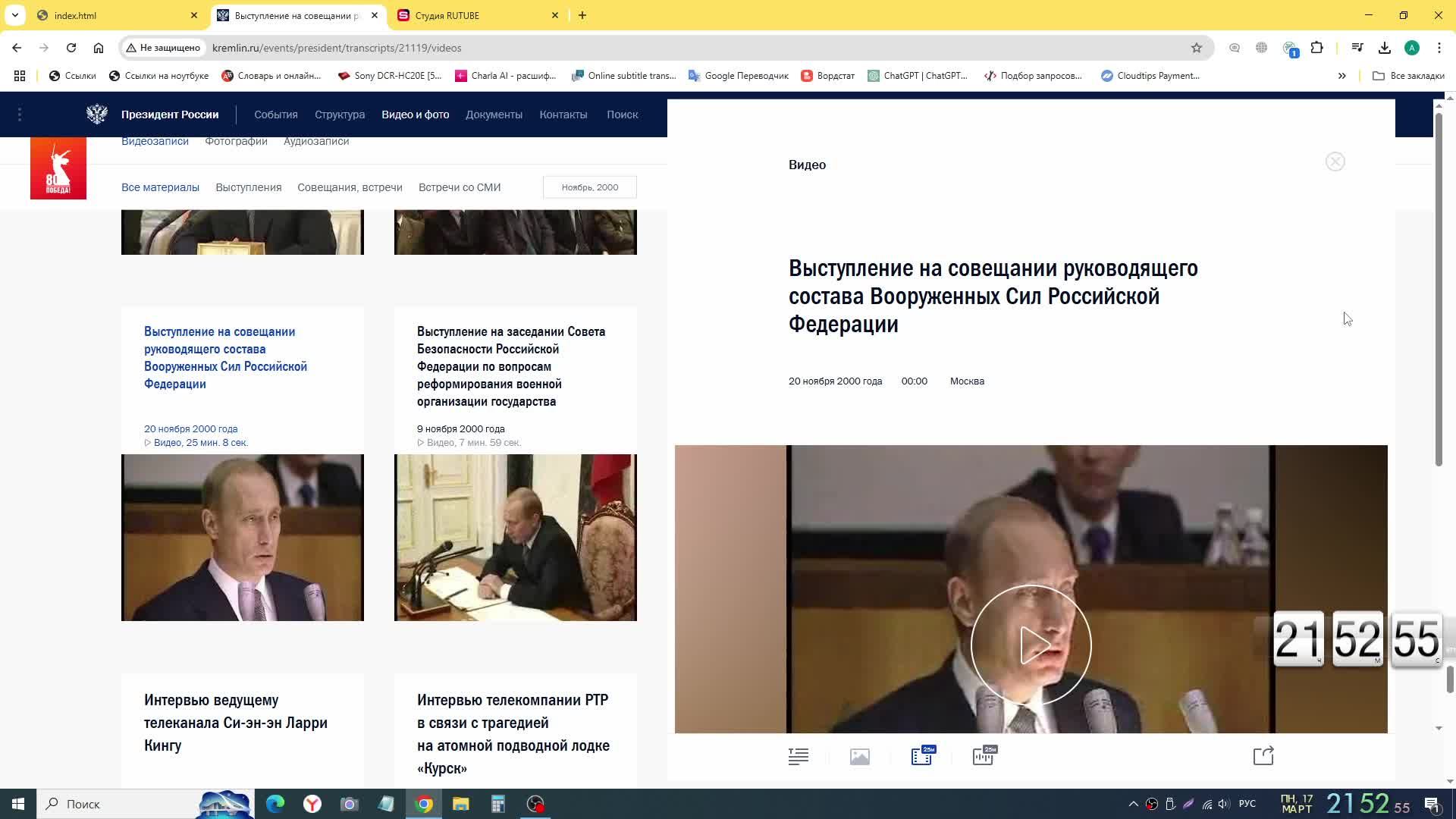 20 ноября 2000 г. В. Путин на совещании руководящего состава Вооруженных Сил Российской Федерации